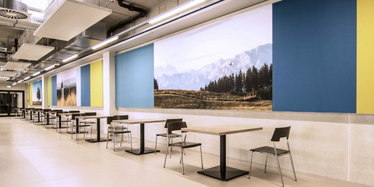 Auf dieser Basis entstehen passgenaue Lösungen, die sowohl technisch als auch gestalterisch überzeugen: Vom Wandabsorber über Deckensegel und Akustikbilder bis zu Raumteilern – die Auswahl reicht von funktional bis designorientiert. Dabei werden eigene Manufakturprodukte sowie hochwertige Absorberelemente etablierter Hersteller verwendet.